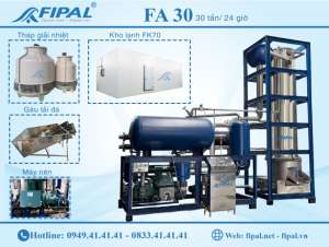 Giá FA30 phụ thuộc vào cấu hình, phụ kiện đi kèm (gàu tải, hệ thống lọc nước, tháp giải nhiệt) và chi phí lắp đặt thực tế tại công trình. Liên hệ trực tiếp 0949.41.41.41 để nhận báo giá chi tiết phù hợp quy mô xưởng của bạn.